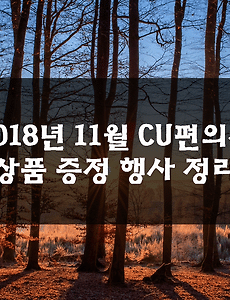 2018년 11월 CU편의점 행사 정리 CU편의점에서 매달 수많은 상품에 대한 행사가 진행되고 있습니다.1+1, 1+2, 1+3 증정행사, 아침에 할인 행사, 사은품 증정행사 등 다양한 상품행사가 있습니다.매달 행사상품이 바뀌며, 전달과 다른품목들이 행사하고 있습니다.(동일한 상품들도 있을 수 있습니다.)그럼 행사품목에 대해 알아보겠습니다. 1. 아침애 행사 아침에 행사품목을 구매 시 구매금액 할인 행사입니다.3개 품목을 제외한 품목은 신한아침애카드로 결제 시 품목 20% 할인 + 음료할인을 받을 수 있습니다.(델몬트오렌지쥬스, 미네랄워터, 밀키스캔은 타사카드, 현금결제에도 할인적용 됩니다. 2. 증정행사 특정 행사품목을 구매 시 사은품 증정 행사입니다.이번 11월달에는 갸스비 왁스, 오뚜기 삼계탕, 소..
