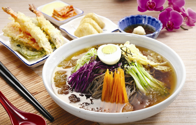 주요 메뉴 - 쟁반메밀국수정식, 돌냄비우동국수, 돌냄비메밀국수, 비빔메밀국수, 돈까스우동정식