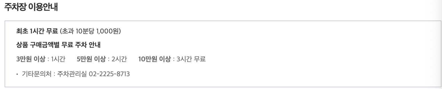 - 현대백화점 신촌점 무료 주차 혜택 -