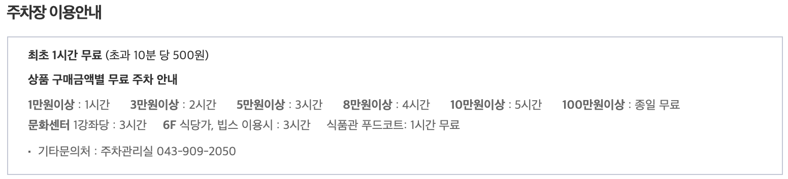 - 현대백화점 충청점 주차요금 -
